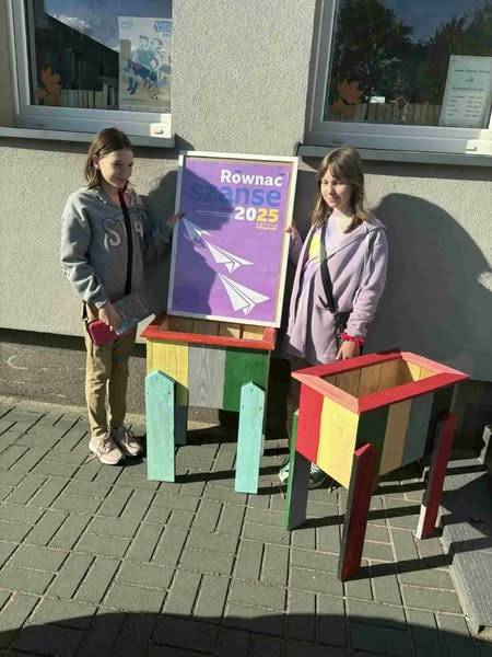 Powstały całkiem fajne meble z recyklingu, które teraz będą służyć młodzieży podczas spędzania wolnego czasu. Mianowicie: dwa stoliki, cztery krzesła, pięć donic.