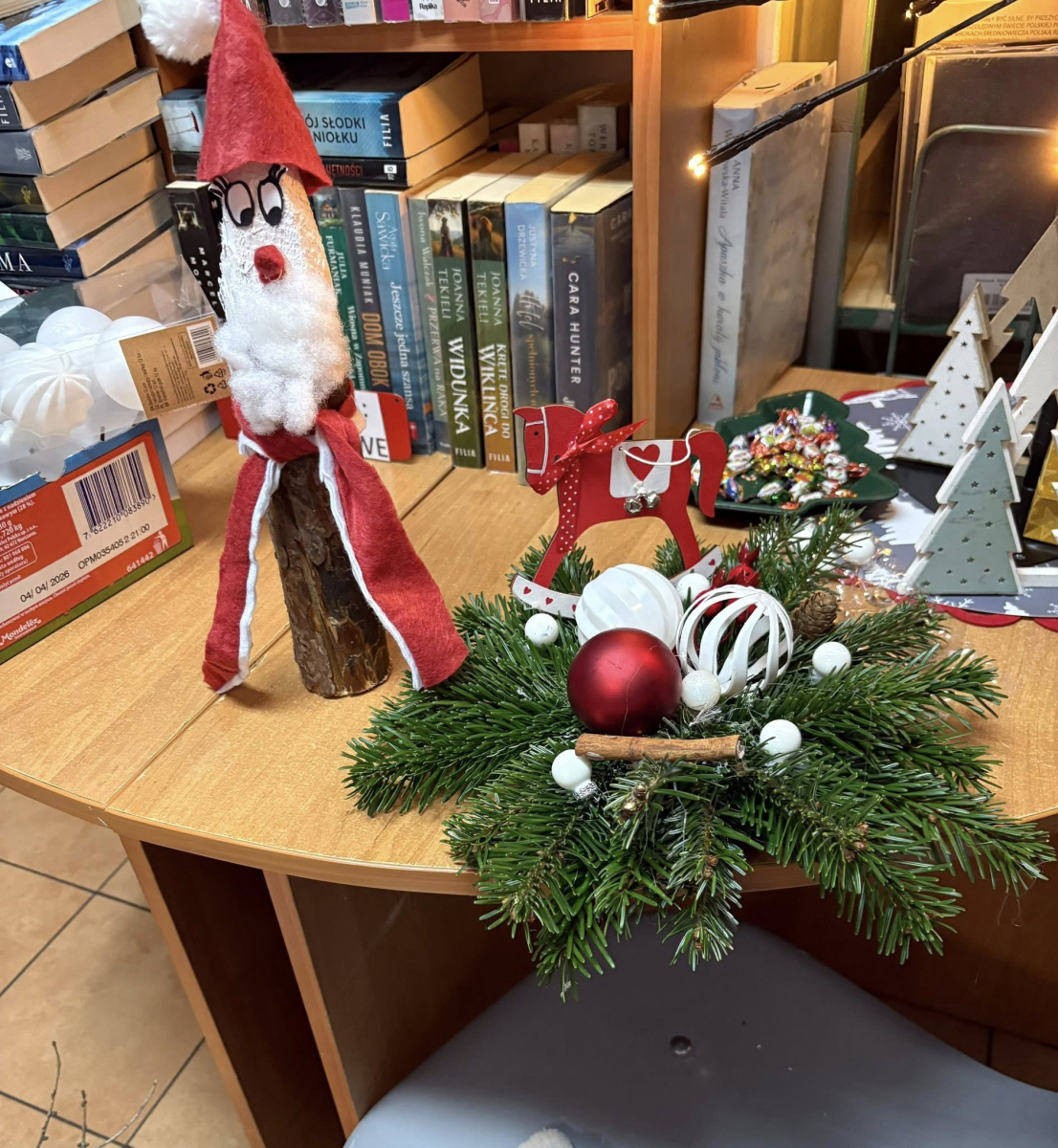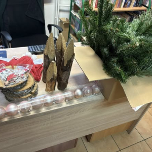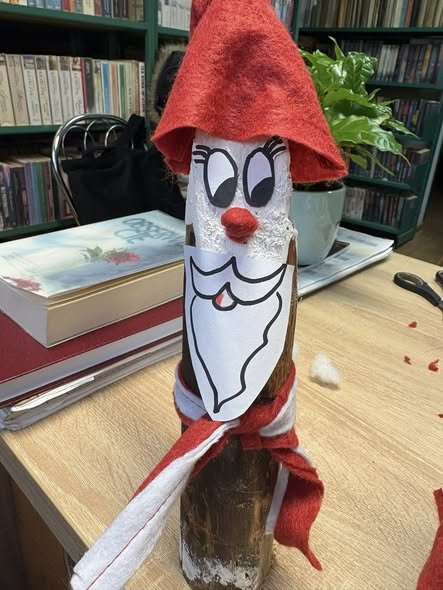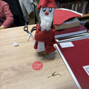 Na zajęciach czytelniczo- kreatywnych odwiedził nas Mikołaj i Mikołajowa zostawiając upominki dla naszych najmłodszych Czytelników, którzy przez cały rok systematycznie wypożyczali książki i odwiedzali bibliotekę. Powstały także drewniane Mikołaje oraz pierwsze stroiki świąteczne.