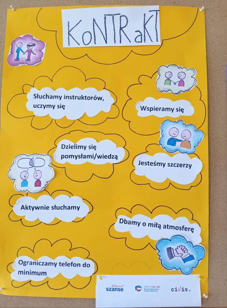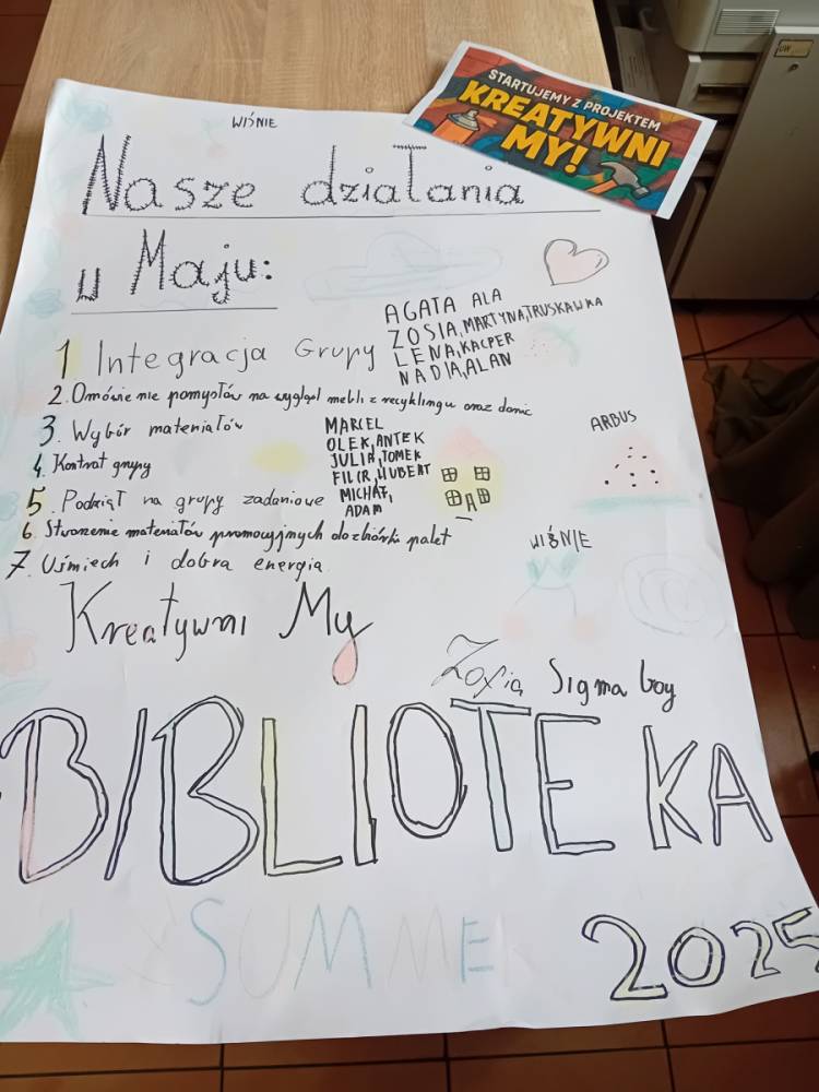 Dwunastu wspaniałych, młodych ludzi uczestniczyło w pierwszym organizacyjnym spotkaniu projektowym. Opracowali kontrakt grupy oraz plan działania na miesiąc maj. Podzielili się na zespoły odpowiedzialne za wykonanie zaplanowanych czynności. Postawili na dobrą energię, uśmiech i współpracę. Niedługo ruszą z konkretną robotą- zaprojektują i zbudują własnymi rękami meble z palet i desek oraz stoliki i donice, które posłużą im do spędzania wolnego czasu razem.